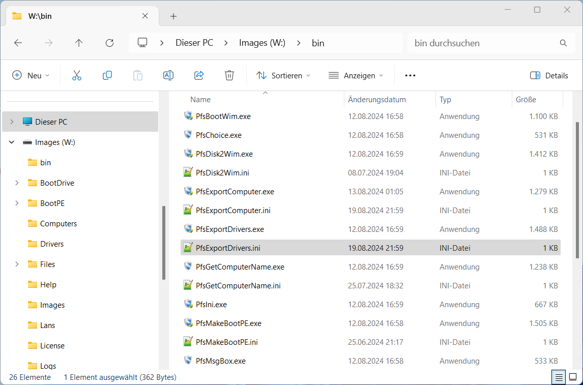 Die Konfigurationsdatei für PfsExportDrivers.exe - PfsExportDrivers.ini - befindet sich auf dem PFS-Protect Installationsmedium im Bin-Verzeichnis.