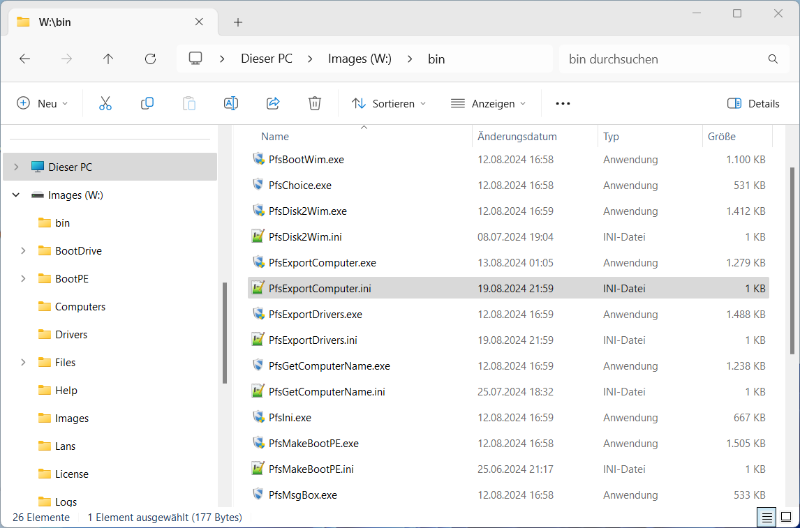 Die Konfigurationsdatei für PfsExportComputer.exe - PfsExportComputer.ini - befindet sich auf dem PFS-Protect Installationsmedium im Bin-Verzeichnis.