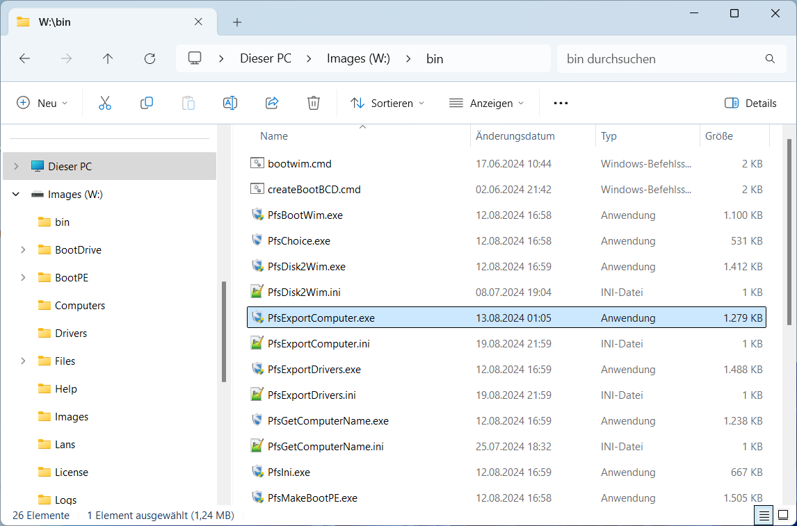 Anders als bei PfsExportDrivers, exportiert dieses Programm nur die Computerdaten des aktuellen Gerätes. Die Computerdaten werden in die Computerdatenbank auf dem PFS-Protect Installationsstick eingetragen. Die Einstellungen können über PfsExportDriversUI oder direkt in der Konfigurationsdatei PfsExportComputer.ini angepasst werden.
