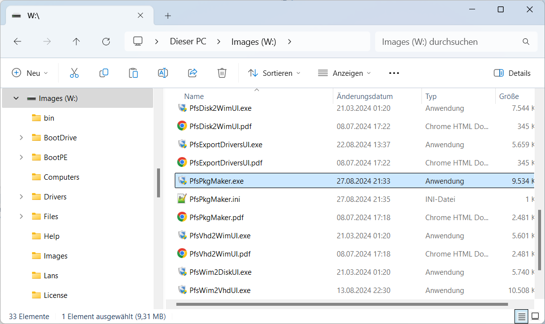 Die graphische Windows Applikation PfsPkgMaker.exe finden Sie im Rootvezeichnis des PFS-Protect Installationsmediums. Seine Aufgabe ist die Einstellungen in ein Package zu sichern und aus einem Package anzuwenden. Dazu werden ausgewählte Dateien in das Package kopiert. Beim Anwenden werden alle Dateien aus dem Package auf den Installationsstick kopiert. Vorhanden Dateien werden ohne Nachfragen überschrieben. Welche Verzeichnisse und Dateien gesichert werden, legen Sie in der Datei '\Packages\PackageList.txt' fest.