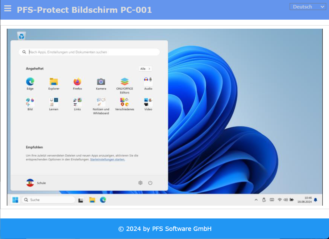 6.6. Bildschirm einsehen https://[COMPUTERNAME]:44301/pfs/html/PfsScreen.html oder https://[COMPUTERNAME]:44301/pfs/html/PfsScreen2.html (ohne Seitenmenü)