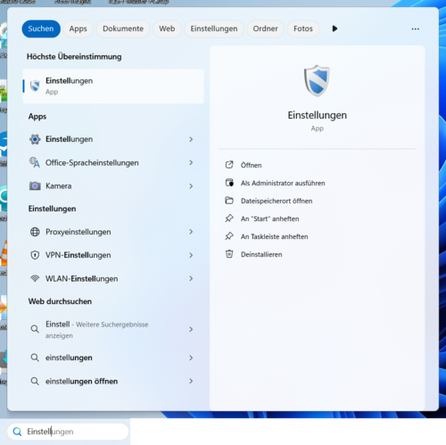 Geben Sie in die Suchleiste 'Einstellungen' ein und öffnen Sie die die App Einstellungen.