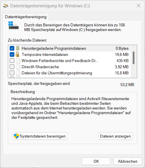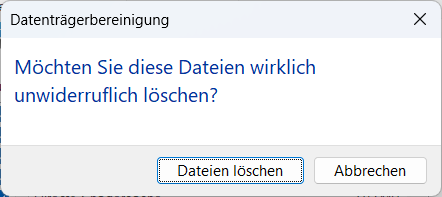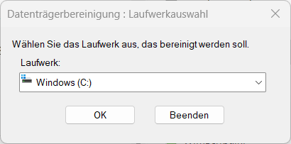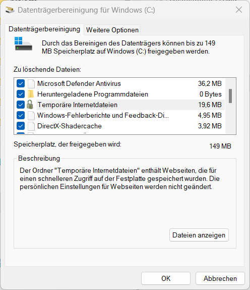 Starten Sie das System neu und führen Sie eine Datenträgerbereinigung durch.