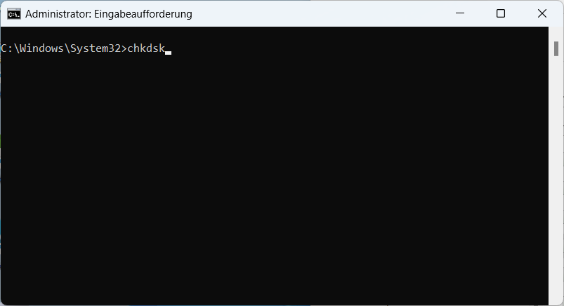 Geben Sie hier 'chkdsk' ein und drücken Sie die Taste 'ENTER/RETURN'.